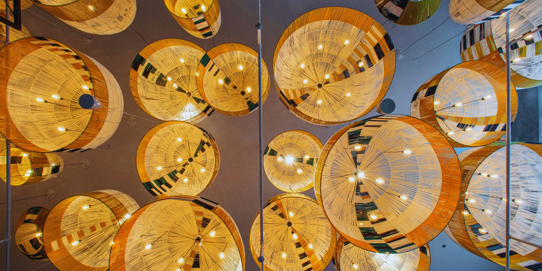 This journey has brought us to what Ashanti Design is today – a design collective hand-weaving upcycled thread onto frames into a vast collection of inspired and contemporary lighting solutions.